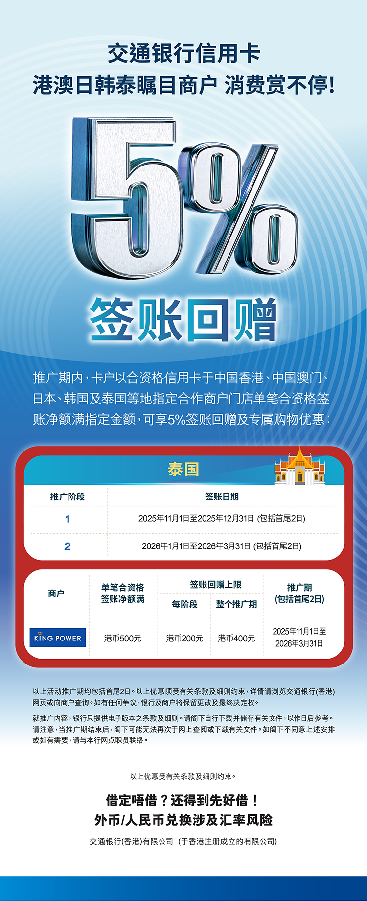 「泰国王权免税店签账礼遇」推广计划条款及细则详情请按此