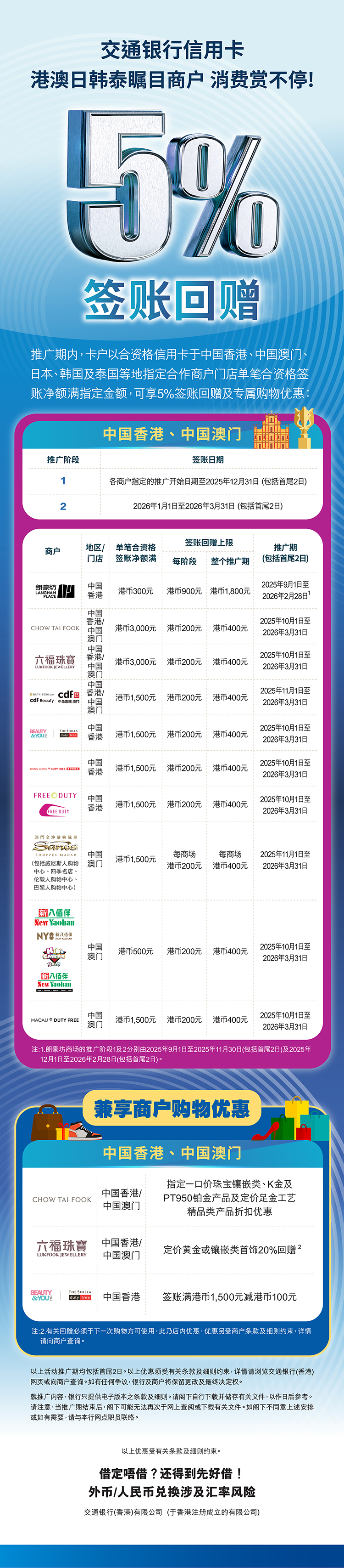 ▶电鄱:cardpromotion@hk.bankcomm.com