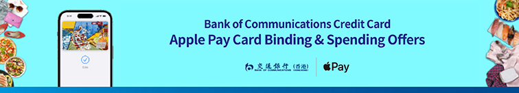 Terms and conditions apply. Please click here for the details of Bank of Communications Credit Card "Apple Pay Reward Promotion" terms and conditions.